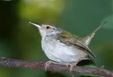 黑喉缝叶莺:体长11.5厘米,是一种小型的顶冠棕色、腹部白色的莺。尾甚长而常上翘,臀黄色,具特征性的偏黑色喉,上体橄榄绿色,头侧灰色。雌鸟色暗,头少红色且喉少黑色。与长尾缝叶莺的区别在后顶冠亦为棕色,…全部>>