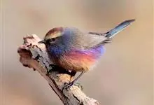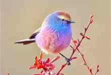 花彩雀莺:体长9-12厘米,是一种毛茸茸偏紫色的雀莺。顶冠棕色,眉纹白。尾长,羽毛松软。前额有一宽阔的眉纹淡黄色,头顶栗色或棕红色,有的具紫蓝色光泽。背灰色,腰和尾上覆羽辉紫蓝色,飞羽灰褐色。…全部>>