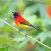 金色林鸲是鹟科、鸲属小型鸟类,体长12-15厘米。头顶至背黄橄榄绿色,眼先和头侧黑褐色,眉纹金橙黄色。肩、翅上小覆羽、腰、尾上覆羽和整个下体概为金橙黄色,两翅黑色。中央尾羽黑色,…全部>>