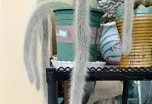 猴尾柱 Mottram),为仙人掌科管花柱属植物,原产玻利维亚的圣克鲁斯省,生长在陡峭的砂岩上面。猴尾柱外形奇特,细长的白毛柱和猴子的尾巴神似,并且夏秋季开花不断,…全部>>