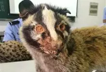 大灵猫,俗名麝香猫、九江狸、九节狸、灵狸,属于灵猫科、灵猫属。大灵猫体长60-80厘米,尾长40-51厘米,体重6-10千克。头略尖,额部相对较宽,趾行性。体基色棕灰,体斑黑褐色。颈侧和喉部有3条波…全部>>