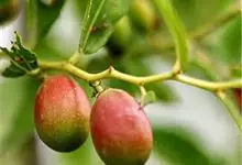 枣,别称枣子,大枣、刺枣,贯枣。鼠李科枣属植物,落叶小乔木,稀灌木,高达10余米,树皮褐色或灰褐色,叶柄长1-6毫米,或在长枝上的可达1厘米,无毛或有疏微毛,托叶刺纤细,后期常脱落。花黄绿色,两性,…全部>>