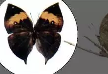 枯叶蛱蝶,又名木叶蝶、树叶蝶等,属于蛱蝶科。翅正面黑褐色,具深蓝色光泽,前翅顶角尖出,顶区有1枚小白点,中部有1条倾斜的橙色斑带,从前缘延伸至Cu室外缘,u室中部有1枚黑色圆斑,…全部>>