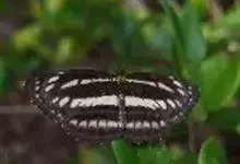 小环蛱蝶,Neptis sappho ,鳞翅目,蛱蝶科环蛱蝶属的一个物种。翅展45mm。翅面黑色,斑纹白色前翅中室有一白色纵纹,断续状;翅反面棕红色。分布于东北、河南、陕西、台湾、北京等。全部>>