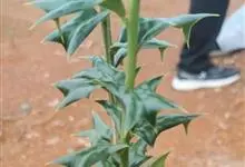 构骨叶冬青学名枸骨,又名猫儿刺、老虎刺、八角刺、鸟不宿、构骨、狗骨刺、猫儿香和老鼠树。常绿灌木或小乔木,高1-3米,二年枝褐色,三年生枝灰白色,叶片厚革质,花淡黄色,果球形,直径8-10毫米,成熟时…全部>>