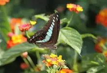 青带凤蝶Graphium sarpedon ,又名青凤蝶,是最普遍的中型凤蝶,飞行速度很快。青带凤蝶的翅膀中央有许多浅蓝色的斑点,很整齐地排列成一条直线。这些斑点由上而下逐渐变大,就像一条青色的带子。全部>>