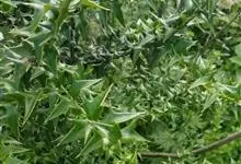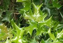 构骨叶冬青学名枸骨,又名猫儿刺、老虎刺、八角刺、鸟不宿、构骨、狗骨刺、猫儿香和老鼠树。常绿灌木或小乔木,高1-3米,二年枝褐色,三年生枝灰白色,叶片厚革质,花淡黄色,果球形,直径8-10毫米,成熟时…全部>>
