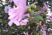海滨木槿是锦葵科木槿属植物,落叶小乔木,株高3-5米,胸径20厘米,扁球形树冠,枝叶繁盛。厚纸质单叶互生,扁圆形、倒卵形或宽倒卵形,先端钝近平,具短突尖,基部圆形或浅心形,叶缘中上部具细圆齿,…全部>>