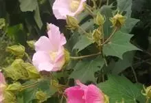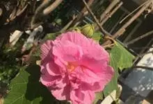 木芙蓉,锦葵科木槿属落叶灌木或小乔木。小枝上有细绒毛;叶片为卵状心形,托叶为披针形,常早落;花单生,花萼为钟形,花冠初为白色或淡红色,后逐渐变为深红色;果实为扁球形,有淡黄色的毛附着。花期8到10月。…全部>>