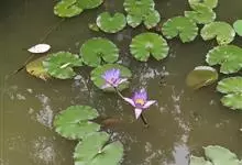 睡莲是睡莲科睡莲属植物统称。多年生浮叶型水生草本植物,根状茎肥厚,直立或匍匐。叶二型,浮水叶浮生于水面,基部深裂成马蹄形或心脏形,叶缘波状全缘或有齿;沉水叶薄膜质,柔弱。花单生,花有大小与颜色之分,…全部>>