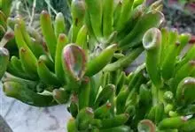 筒叶花月,是景天科青锁龙属的多年生草本植物。植株多分株,灌木状,茎较粗壮,圆柱形,表皮灰褐色;叶片肉质,互生,呈圆筒状,簇生于茎或分枝顶端,叶端呈斜截形,截面为椭圆形;花呈星状,淡白色;花期秋季。…全部>>
