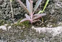 棒叶落地生根是景天科、落地生根属植物。茎直立、粉褐色。叶圆棒形,上表面有沟、粉色,有红褐斑。叶片交互对生,交叉排列成十字形。叶端锯齿上长有很小的幼株、落地后即可生根成活。原产非洲马达加斯加。…全部>>