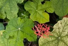 佛肚树是大戟科麻风树属的直立灌木。株高可达1.5米;茎基部或下部通常膨大呈瓶状;枝条粗短,具散生突起皮孔;叶盾状着生,近圆形或宽椭圆形,先端圆钝,基部平截或钝圆,托叶分裂呈刺状,宿存;花序顶生,…全部>>