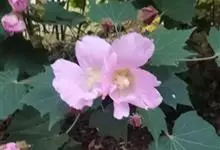 海滨木槿是锦葵科木槿属植物,落叶小乔木,株高3-5米,胸径20厘米,扁球形树冠,枝叶繁盛。厚纸质单叶互生,扁圆形、倒卵形或宽倒卵形,先端钝近平,具短突尖,基部圆形或浅心形,叶缘中上部具细圆齿,…全部>>
