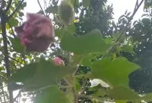 木芙蓉,锦葵科木槿属落叶灌木或小乔木。小枝上有细绒毛;叶片为卵状心形,托叶为披针形,常早落;花单生,花萼为钟形,花冠初为白色或淡红色,后逐渐变为深红色;果实为扁球形,有淡黄色的毛附着。花期8到10月。…全部>>