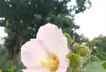 海滨木槿是锦葵科木槿属植物,落叶小乔木,株高3-5米,胸径20厘米,扁球形树冠,枝叶繁盛。厚纸质单叶互生,扁圆形、倒卵形或宽倒卵形,先端钝近平,具短突尖,基部圆形或浅心形,叶缘中上部具细圆齿,…全部>>