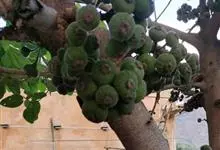 大果榕是桑科榕属的小乔木,株高可达10米;幼枝被柔毛;叶互生,宽卵状心形或近圆形;雄花无梗、匙形、花丝长,雌花生于雌株榕果内,子房白色;榕果簇生于树干基部或老茎短枝上、扁球形或陀螺形,…全部>>