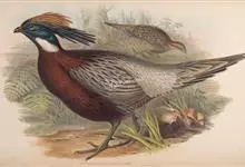 血雉雉科血雉属鸟类,别名血鸡、松花鸡,血雉的雄鸟大覆羽、尾下覆羽、尾上覆羽、脚、头侧、腊膜为红色,故称血雉。其别名甚多,各地皆异。在甘肃,因其胸侧和翅上覆羽沾绿,被称为“绿鸡”;因其羽毛形似柳叶,…全部>>