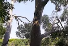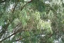 柠檬桉,又名“油加利树”“尤加利树”,是桃金娘科、桉属的常绿大乔木。树高28m,树皮光滑;幼态叶片披针形,有腺毛,基部圆形,叶柄盾状着生,成熟叶片狭披针形;圆锥花序腋生,花蕾长倒卵形;蒴果壶形,…全部>>