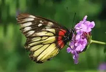 报喜斑粉蝶是粉蝶科斑粉蝶属的一种动物,又名红肩粉蝶、藤粉蝶等。幼虫群集性很强,从同一卵块孵化出的幼虫,幼龄期全部群集在一起取食,高龄幼虫常分散成小群。幼虫群集危害叶片,造成秃枝,严重者可将树吃成光杆,…全部>>