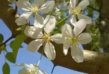 山荆子 Borkh.):为落叶乔木,树高可达4-5米,最高可达10米以上。灰褐色,光滑,不易开裂。新梢黄褐色,无毛。嫩梢绿色微带红褐。叶片椭圆形,先端渐尖,基部楔形,叶缘锯齿细锐。伞形总状花序。花白色,…全部>>