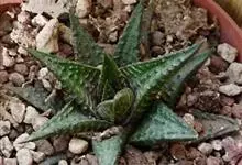 条纹十二卷 Haw.)是芦荟科十二卷属植物,为多年生肉质草本植物。植株高度10-15厘米,其呈莲座状生长;叶片紧密轮生在茎轴上,柔软多汁,呈长三角状披针形,极肥厚;叶面光滑、扁平,色深绿;叶背突起,…全部>>