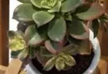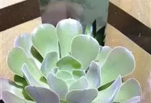 红缘莲花掌属蔷薇目、景天科植物,原产大西洋的加那利群岛。质厚,蓝绿色,被白霜,叶缘红褐色。聚伞花序,花浅黄色,有时带红晕。叶形叶色较美,有一定的观赏价值,多盆栽用于点缀室内;可放置于电视、电脑旁,…全部>>