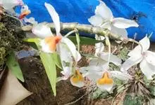 肿节石斛,是兰科石斛属多年生草本植物。肿节石斛茎斜立或下垂,肉质,圆柱形;叶纸质,长圆形;花序生于已落叶老茎上部,花白色,上部紫红色,有香气;花瓣宽长圆形,唇瓣白色,中部以下金黄色,上部紫红色,…全部>>