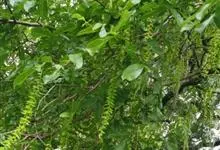 青钱柳 Il jinsk.),胡桃科青钱柳属的落叶乔木植物。枝裸芽具柄,密锈褐色腺鳞;枝条髓部薄片状分隔;叶奇数羽状复叶,基部歪斜,宽楔形或近圆,具锐锯齿;花雌雄同株;雌、雄花序均葇荑状;果具短柄,…全部>>