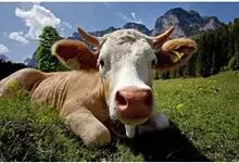 西门塔尔牛是偶蹄目牛科牛属哺乳动物。 体躯长,呈圆筒状,肌肉丰满;头较长,面宽,颈长中等,角较细而向外上方弯曲,尖端稍向上;前躯较后躯发育好,胸深,尻宽平,四肢结实,大腿肌肉发达,乳房发育好。…全部>>