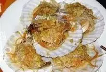 豉汁扇贝,山东威海著名的特色小吃,做法简单,咸鲜味十足。扇贝放在装有清水的盆里泡上一个小时;然后用刷子刷干净外壳;把扇贝用小刀撬开,把内脏及腮去除;把用温水泡软的粉丝放到扇贝上;大蒜成蒜蓉;在炒锅里…全部>>