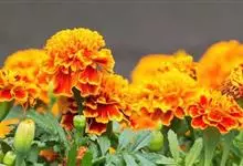 万寿菊是菊科万寿菊属一年生草本植物,别名孔雀菊、缎子花、臭菊花、西番菊、红黄草、小万寿菊、臭芙蓉、孔雀草。万寿菊茎近基部分枝。叶羽状分裂,长5-10厘米,宽4-8厘米,裂片长椭圆形或披针形,具锐齿,…全部>>