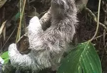 树懒,是披毛目哺乳动物的通称,共有2科2属6种。树懒头又圆又小,耳朵也很小,而且隐没在毛中;上颌有5齿,下颌有4齿,细小而没有釉质;尾巴很短,只有3~4厘米;毛被蓬松长厚,毛色灰褐。因其树懒形状略似猴,…全部>>