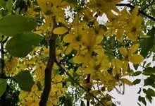 腊肠树:是豆科腊肠树属植物。落叶乔木,高可达15米;枝细长;树皮灰色,老时粗糙,暗褐色。叶长30-40厘米,小叶对生,薄革质,阔卵形,卵形或长圆形,边全缘,幼嫩时两面被微柔毛,老时无毛;叶脉纤细,…全部>>