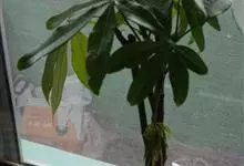 瓜栗 Walp. ),俗称发财树,木棉科小乔木,高4-5米,树冠较松散,幼枝栗褐色,无毛。小叶具短柄或近无柄。花单生枝顶叶腋;花梗粗壮,被黄色星状茸毛,脱落;萼杯状,近革质;花瓣淡黄绿色,狭披针形…全部>>