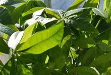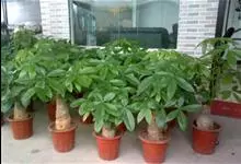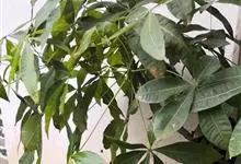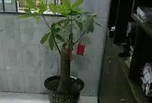 瓜栗 Walp. ),俗称发财树,木棉科小乔木,高4-5米,树冠较松散,幼枝栗褐色,无毛。小叶具短柄或近无柄。花单生枝顶叶腋;花梗粗壮,被黄色星状茸毛,脱落;萼杯状,近革质;花瓣淡黄绿色,狭披针形…全部>>