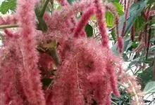 红穗铁苋菜:为大戟科、铁苋菜属植物,灌木,高0.5-3米。嫩枝被灰色短绒毛,毛逐渐脱落,小枝无毛。 花序色泽鲜艳,葇荑花序下垂,如狐狸尾状,雌花近卵形,长约0.8毫米,顶端急尖,具短毛;子房近球形,…全部>>