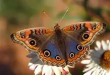 美眼蛱蝶为鳞翅目、蛱蝶科、眼蛱蝶属节肢动物。除西北外,全国各地均有分布,国外分布于日本及东南亚。幼虫以马鞭草科的过江藤、车前草科的车前草等为食。全部>>