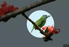 金喉拟啄木鸟,是须鴷科、拟啄木鸟属的鸟类。金喉拟啄木鸟为小型鸟类,体长19-24厘米。额深红色,头顶金黄色,后枕具一大块深红色斑,耳羽和头侧银灰色,上体草绿色,颏和上喉金黄色,下喉淡银灰色,…全部>>