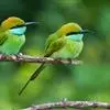 绿喉蜂虎是佛法僧目、蜂虎科的小型鸟类,共有9个亚种。身长22-25厘米,翼展29-30厘米,体重15-20克。喉绿色,额部、头顶至上背为锈红色,其余上体均为亮绿色。中央尾羽延长且端段狭细,…全部>>