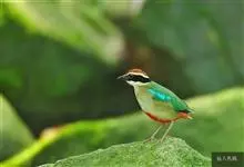 绿胸八色鸫:是雀形目八色鸫科的鸟类,共有12个亚种。体长为16-18厘米,体重65-69克。体型圆胖,尾短,腿长。头黑,上体绿色,两翼深色而具白色斑纹,头顶至后枕深褐,胸及腹部苹果绿,臀亮红。…全部>>