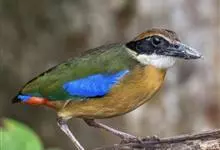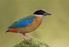 蓝翅八色鸫是雀形目八色鸫科的鸟类。体长17-20厘米,体重类约48-70克,体型圆胖,尾短,腿长,以身体具有红、绿、蓝、白、黑、黄、褐、栗等鲜艳夺目,丰富艳丽的色彩而得名,是很有观赏价值的鸟类。主要…全部>>