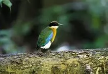 仙八色鸫是雀形目八色鸫科八色鸫属鸟类。雄鸟前额至枕部深栗色,有黑色中央冠纹,眉纹淡黄,背、肩及内侧飞羽辉绿色,飞羽黑色具白翼斑,颏黑褐、喉白,下体淡黄褐色、腹中及尾下覆羽朱红色。雌鸟羽色似雄鸟但较浅淡。…全部>>