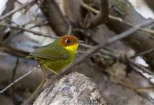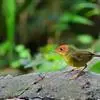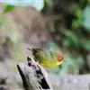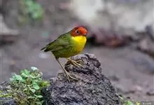 金冠地莺:形态与灰腹地莺相似,上体橄榄绿,前额至头顶渲染亮金黄色;下体几乎纯暗石板灰色,下嘴基部橙红色或橙黄色。虹膜褐色;上嘴角褐色,下嘴基部橙红色或深橙黄色直至嘴尖;跗跖和趾褐色,爪褐色。…全部>>