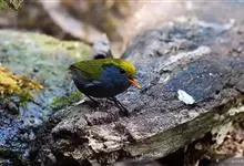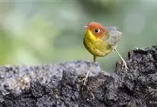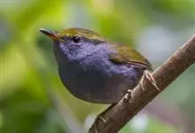 金冠地莺:形态与灰腹地莺相似,上体橄榄绿,前额至头顶渲染亮金黄色;下体几乎纯暗石板灰色,下嘴基部橙红色或橙黄色。虹膜褐色;上嘴角褐色,下嘴基部橙红色或深橙黄色直至嘴尖;跗跖和趾褐色,爪褐色。…全部>>