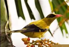 黑枕黄鹂又称黄莺、黄鹂、金衣公子等,是雀形目黄鹂科黄鹂属鸣禽。体长23~27厘米,嘴略下弯,粉色;雄鸟整体主要呈鲜明的黄色,黑色过眼纹在额和枕后相连,且在枕后较粗,形成一围绕头顶的黑色宽带;飞羽黑色,…全部>>