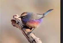 凤头雀莺:小型鸟类。体长9-10厘米,雄鸟呈毛茸茸的紫色和绛紫色,顶冠淡紫灰色,额及凤头白色,尾全蓝。雌鸟喉及上胸白,至臀部渐变成淡紫色,耳羽灰,…全部>>