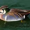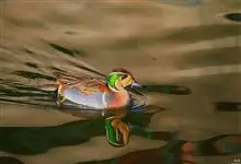 绿翅鸭是小型鸭类,体长37厘米,体重约0.5千克。嘴脚均为黑色。雄鸟头至颈部深栗色,头顶两侧从眼开始有一条宽阔的绿色带斑一直延伸至颈侧,尾下覆羽黑色,两侧各有一黄色三角形斑,在水中游泳时,极为醒目。…全部>>