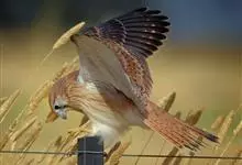 红隼:是隼科、隼属的小型猛禽之一。体重173-335克,体长305-360毫米。翅狭长而尖,尾亦较长,外形和共同爪隼非常相似。雄鸟头蓝灰色,背和翅上覆羽砖红色,具三角形黑斑;腰、尾上覆羽和尾羽蓝灰色,…全部>>
