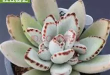 褐斑伽蓝是景天科伽蓝菜属的多年生多肉类植物,茎直立,多分枝,叶生于枝上,肉质叶片匙形,上面密被白色绒毛,下部全缘,叶缘上部有缺刻,缺刻处有深褐或棕色斑块。褐斑伽蓝原产非洲的马达加斯加岛。…全部>>